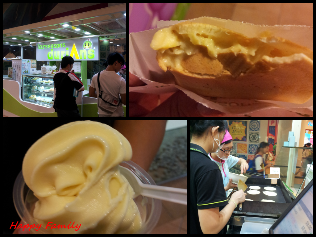 Alyssa and myself took a bus over to AMK hub to meet up with Goh..... since we are still early for the dinner we went to join the queue which is forming up for the Four Seasons Durian Pancake. And at the same time we are offered to sample their durian icecream.